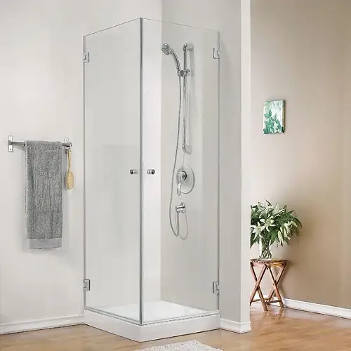 מקלחון המורכב משתי דלתות נפתחות פנים חוץ ללא פרופילים,